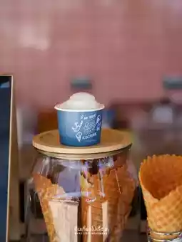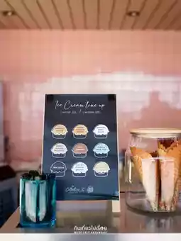 As for the ice cream, there are about 8-10 flavors. Why do I feel that the price is a bit more expensive than in Bangkok? One scoop costs 125 baht, two scoops 230 baht. But the atmosphere of the shop is that the view is good, the angle is really good.