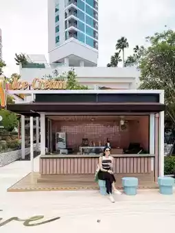 #Pattaya Travel Walked past a small ice cream stall in confusion. Walked closer to look. Oh, it was Guss Damn Good ice cream. It is located on Pattaya Beach. In the area of The Collective Pattaya, which is another interesting spot. Because this area is a restaurant and bar in front of the Holiday Inn Hotel.