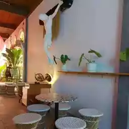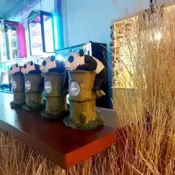 The bar is located on the left-hand side in front. The interior of the bar is decorated in many styles, both Balinese and warm. There is a cute panda sitting on the counter. I like the design of the entrance door as an Arabian arch. Inside, there are chill seats connected to the cafe. After drinking, you can walk and take pictures in the cafe.