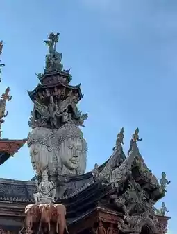🌈The Sanctuary of Truth is a beautiful religious site located by the sea in Pattaya. It is made entirely of wood. Every corner is beautiful and stunning. It is an architectural work that showcases the meticulous craftsmanship of the sculptors. No matter how many times you go, it is never the same because this place is constantly being renovated and repaired. Anyone who loves art and photography must go see it at least once.