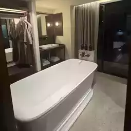 Atmosphere/Location: Decorated in a modern Thai style, uniquely beautiful. Conveniently located near the beach with parking available. The rooms feature a bathtub and a comfortable soft bed.