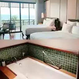 The swimming pool is very large, there are 3 pools, amazing swimming pool, beautiful scenery and complete facilities, close to the sea, you can enjoy the beautiful Pattaya ocean, the trees are green on all sides, creating a peaceful oasis atmosphere, a hotel with magnificent views. The rooms are comfortable, quiet and private. It is about 15 minutes drive from Pattaya Street and the location is very good. The hotel has a private beach where you can enjoy a tranquil holiday atmosphere. Full of holiday feeling.