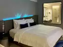 🍂 "Dad" has a total of 4 highlights: Space Beach Bar, a poolside bar that simulates sea waves, and Sola Luna Rooftop Restaurant on the top floor, taking in the view of Pattaya. 🌊 During the day, settle down at the water park, play on 5-meter and 8-meter high slides, float on rubber rings in a cave pool, and an artificial beach with waves.