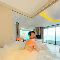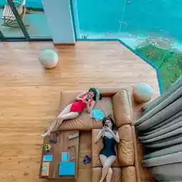 It's the Top Star Duplex Suite, which looks like a luxurious observatory. The area is 117 sq m, 2 floors, and you can see the sea 360 degrees. It can accommodate up to four people.