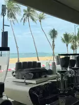 When you arrive in Pattaya, you must check in at Jomtien Beach first. The view is beautiful with an international feel. You can take pictures from any angle. On the beach, there is a coffee shop called Sunset Coffee Roaster. The coffee is delicious. The view from the shop is Jomtien Beach outside. It is beautiful and unique.