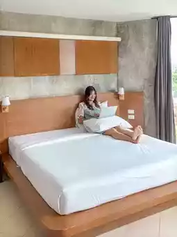 This type of room starts at only 8xx฿ but you get a very worthwhile room. Inside the room, there is a king-sized bed that can comfortably sleep 2 people. There is a large window with a sea view. There is a work desk by the window. The other window has a garden view. There is a long chair to recline.