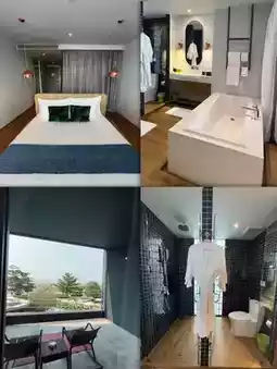 This Pattaya accommodation is an escape, just as the name "Navana Nature Escape" suggests. It's perfect for total relaxation. It's a beachfront accommodation with a very shady atmosphere, I love it so much, so chill. ☺️🌿 Overall atmosphere 🌿- By the sea, you can walk down to the beach. - There are seats along the beach, it's not hot at all because there are a lot of trees along the beach. I like this point the most. ❤️- Very spacious, not crowded, there are many corners to sit and relax. - Shared swimming pool, not many people. - Plenty of photo corners, everything is beautiful. 🪐 Room 🪐- We stayed in a Deluxe sea view room, with a view of the sea from afar. - Very spacious room, fully equipped with amenities. - Good bathroom, bathtub, shower and toilet are separate. - There is a wide balcony in front of the room, overlooking the pool and the sea. 🥐 Food 🥐- This is my favorite breakfast room of all because there is "Tom Yum Goong"!! I especially like this one, lol. ❤️- There is a huge selection of food to choose from. Great value⭐️ Score: 10/10🌊 Summary 🌊- Personally, I don't think a sea view room is necessary. The price is quite high. You can walk down to the beach instead.- Overall, it's worth the price. I highly recommend it for a relaxing vacation.