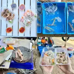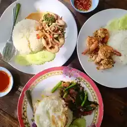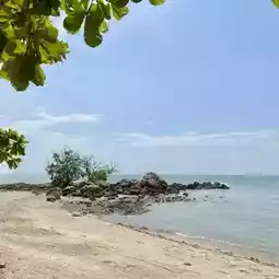 Although it is called a secret beach, it is not secret anymore. There are more and more people, both Thais and foreigners. Especially now, the weather is nice. There are big trees along the beach to provide shade. Plus, the water is clear and you can sit and relax. There are shops that rent mats, sheets, and chairs. There are restaurants that serve food and drinks, and a famous shop called Sashimi Haad Lap. Come and eat fresh squid from the fishing boat.