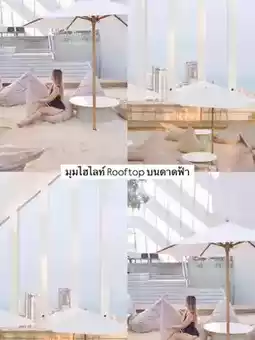 As for the check-in point! 🔥 Don't miss it, the rooftop cafe with a simulated beach and a swimming pool with the best view in #Pattaya. You can see the sunrise and sunset from every angle. The view in the evening is great. You can see the sea in 360 degrees.