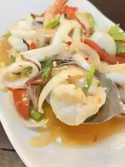 This is my second time eating at Poo Pen, a famous restaurant‼️ If you come to Pattaya, you must eat here. The recommended menu is the black squid. I can't remember the name, but it's sooo delicious🩷💞