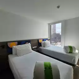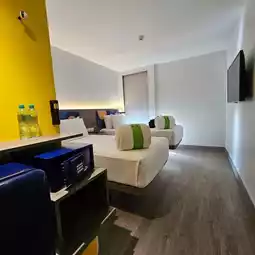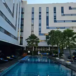 Cozy Pattaya Hotel is a modern style hotel with colorful interior decorations. It has chic, cute, cool furniture and beautiful neon lights that are decorated inside the hotel, making the atmosphere in the hotel fun and not boring. The check-in lobby is right at Cafe 247. This cafe and lobby are open 24 hours a day. You can come to work or relax. There is also a Social Club seating area. There are many seating areas to choose from, including tables and sofas, or you can sit at the bar overlooking the swimming pool, which is also chic. The rooms are narrow and not very big. The room size is 18-20 square meters, with 2 types of beds to choose from: single bed and twin bed. The view is both the city view and the swimming pool view. The interior of the room is decorated in the same style, clean, with an emphasis on white and blue, making it look warm, clean, safe, with cool air conditioning and very strong Wi-Fi. The location is in a very good area, in the North Pattaya-Naklua area, near Wong Amat Beach. You can walk there to relax. It is not far from Terminal21 Pattaya shopping mall. There is a 7-11 and Tops Daily store in front of the hotel to serve you. There is a cafe that is not far from the hotel. Considered to be a complete stay here, suitable for a good weekend getaway in Pattaya.