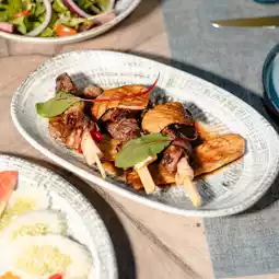 A beach club-style restaurant with a great atmosphere. The interior is decorated in a soothing white-cream color scheme with a beautiful sea view. The interior is shady and comfortable, perfect for chilling out or having a great dinner. The sunset view is so beautiful in the evening.