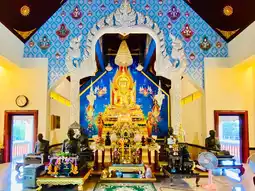 Many people flock to Wat Phutthiwararam (Wat Krathing Rai) 🌟 to pay respects to the Phra Phutthanirodharangsi, dressed in royal attire, as well as the relics of the Arahants, and other sacred objects within the temple. This image brings blessings for auspiciousness, stability, and advancement in business, according to individual beliefs. They also admire the striking architectural beauty of Wat Krathing Rai. 😇💖📸