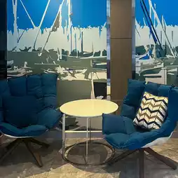 As for the rooms, they are simply decorated, clean, in blue and white tones. The room size is just right, not cramped. The bed is soft and comfortable. The pillows are fully equipped with amenities, including a TV, work desk, refrigerator, hot water kettle, water heater and hair dryer. As for the facilities, there is a swimming pool and a fitness center that is open 24 hours. As for breakfast, it is a buffet line with a variety of menus to choose from. There is also a Grab & Go breakfast service for those who are in a hurry to go to work.