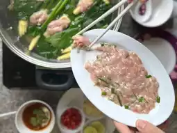 Sweet and fragrant soup, delicious and rich dipping sauce, fresh ingredients, pork with condiments, soft pork, delicious