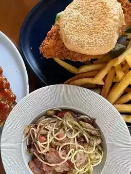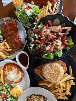It can be said that it is both worthwhile and delicious, the pork steak is soft, the spinach baked with cheese is delicious, the spaghetti is also good, the burger is good. Let's do it like this. It comes in a Portion that can be called beyond the price, cheap and good quality!