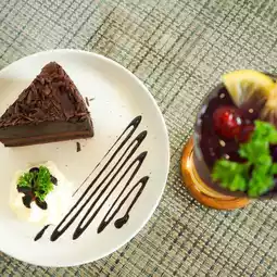 This shop is called Gecko Garden Cafe, a restaurant and cafe in a spicy garden restaurant # The cake and coffee are very delicious. There is both an air-conditioned area inside the shop or an outdoor area for a different feel like eating in a garden. Importantly, the sleeping area is also pet-friendly🌼