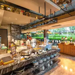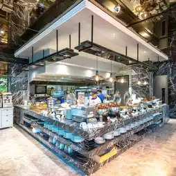 There are both air-conditioned and outdoor areas to enjoy the breeze and watch the sunset.
