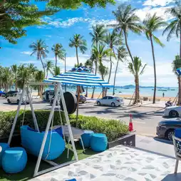 Sit and sip coffee, eat cake, and enjoy the beautiful view of the beach and the sea in Pattaya.