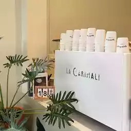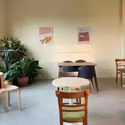A lot of seats, both indoor and outdoor, beautiful photos in every corner. Food, drinks and desserts are available.