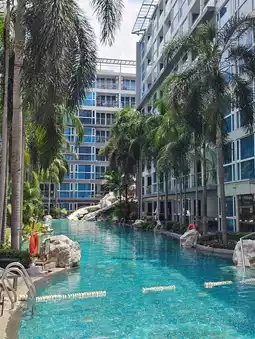#Lowrise accommodation, share the location of the accommodation #Songkran, come relax at #Pattaya, play water to cool off, stay at Azure Hotel Pattaya, travel and relax safely, no need to worry. From the past events, Pattaya is still worth visiting, not affected by the earthquake. The rooms are nice, breakfast included, with a large swimming pool, 3 slides, play until 20:00.