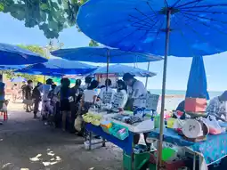 🏖️This place is suitable for family travel because there are places to sit and relax under the trees. You can come to sit and relax, lie down, or bring your children to play in the water. There are not many shops and restaurants, but there are enough things to sell. Or you can bring food to have a picnic. There is also fresh sashimi for sale. The line is very long.