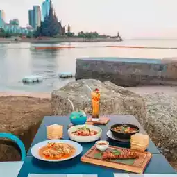 Beautiful beach, you can swim in the sea, and there is also a cafe and delicious food