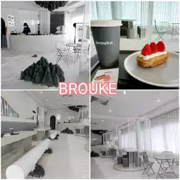 🍷🍸BROUKE, a cafe decorated in white, clean tones, simulating a sandy beach for you to walk on.