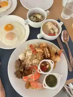 (🍽️) — The highlight here is the breakfast! Impressive as usual. There is a lot of food. There is Tom Yum Kung, fried shrimp with tamarind sauce that is very delicious, pork congee that is very filling. Just the food is worth it. 😋