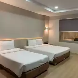 Mike Garden Resort Hotel is not on the beach but you can see the sea. Buy a room with a dinner buffet promotion, it's 1000+++ per person. Come with friends. The room can sleep many people. Newly renovated, clean accommodation, tidy, soft bed, wide, clean bathroom, no bathtub, coffee provided in the room. There are some trees in the hotel and a kid club swimming pool, small pond. The newly renovated lobby is clean and wide.