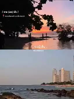 🪼 This beach is more private than Pattaya Beach. The photo angle is beautiful. The water is very clear. During low tide, rocks emerge. It's very beautiful. During high tide, it's beautiful in another way. [Last picture]