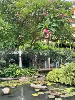 🌟 Highlights: The outdoor environment at Dusit Thani Pattaya is a standout feature, resembling a tropical botanical garden by the sea. The hotel grounds are lush with native plants year-round, including coconut palms, white orchids, frangipani, and agave, filling the air with floral fragrances. The winding stone pathways, adorned with orchid displays and Thai sculptures, meander through shaded greenery, creating a serene jungle-like ambiance perfect for leisurely strolls.