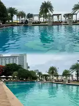 👍 Highly Recommended: Dusit Thani Pattaya boasts two main swimming pools, each offering tranquil, scenic spaces overlooking the bay. The infinity-edge pool, centrally positioned with panoramic sea views, blends seamlessly with the azure waters of Pattaya Bay, creating the illusion of flowing directly into the ocean. Nestled on the garden side, the second pool is surrounded by verdant foliage, providing a secluded retreat away from the main building.