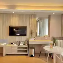 🛏️ The rooms here are minimalist, cozy style. The rooms are very spacious, the beds are big and soft, very comfortable to sleep in. The bathroom is separated into wet and dry zones. 🛁🧽 The room we stayed in was a 𝗚𝗿𝗮𝗻𝗱 𝗗𝗲𝗹𝘂𝘅𝗲 and get a free 𝗠𝗶𝗻𝗶 𝗔𝗳𝘁𝗲𝗿𝗻𝗼𝗼𝗻 𝗧𝗲𝗮 1 set 🫖🍵 I must say that it's perfect for glamour and content lovers like us 😍💖