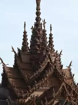 The Sanctuary of Truth isn’t just a building—it’s a living dialogue between humanity and eternity. Since 1981, artisans have carved 3,700 ancient logs by hand, without a single nail, transforming wood into wisdom. Every chisel strike etches Hindu, Buddhist, Taoist, and Khmer philosophies into soaring 105-meter spires.