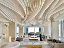 The ceiling is designed from fabric that looks like sand, giving it a beach feel, which is connected to the Drift restaurant, which offers a panoramic view of Pattaya Beach. This floor is also home to a spa, fitness center, and infinity pool, offering a view of Khao Phra Tamnak, Koh Larn, and Pattaya Beach from a high angle.