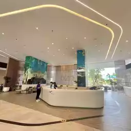 It is a very good location hotel. It is a new hotel located in the city center. It is near the mall and the beach. The hotel has a lot of parking spaces. The hotel is shady, the air is cool, comfortable, and complete in every way.
