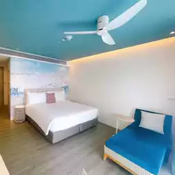The room is decorated in a cute sea style. The hotel is clean and good.
