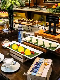 Special now, buffet, come 4 pay 3 only 🔥 Including free flow drinks for 1 hour. Everything you want to eat and drink. There is a bar for serving food, both savory and sweet. My girlfriend likes this very much. Cakes, desserts 🍫🥧