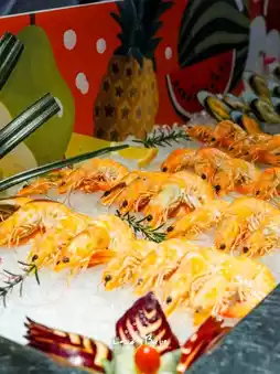 Delicious, fresh, full every Friday and Saturday evening at Garden Café restaurant, Avani Pattaya Resort. So much fun. There are chefs grilling fresh, hot, peeling, ready to eat, served to the table. The dipping sauce is very spicy 🌶️ I like it~