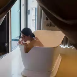 There is a bathtub in the middle of the room. Content lovers will love this.