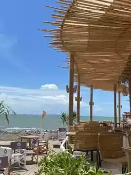 In the evening, there is a live band playing softly. It is very chill. It is perfect for sitting and chatting with friends. Or bring someone special to sit by the sea 🌅