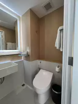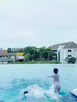 The water park is not very big but clean. There are slides and foam for rent at 100 baht per time. The rooms are clean and have complete equipment: plates, bowls, spoons and forks (2 pairs). There is no dishwashing liquid, so you may have to bring your own if you want to use it many times. The rooms are on the road, so there may be noise from modified motorcycles or ambulances. There is a small kids club for children to play. You can go up to the 22nd floor observation deck to see the view. For breakfast, the buffet line has a lot of food and it's delicious.