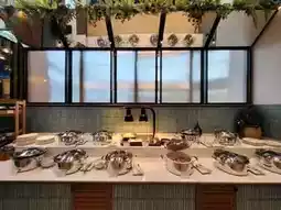 The Collective is the main restaurant on the first floor of the Bay Tower of Holiday Inn Pattaya. It can be reached by walking down from the right entrance of the lobby. This restaurant is not only the place where the hotel provides breakfast, but also one of the most popular all-day dining spaces on the Pattaya beach.
