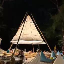 Chill out with a bonfire atmosphere, listen to music, chat with your friends, your significant other, and your family. There are both outdoor and indoor areas for families and those who want to sit on a chair.