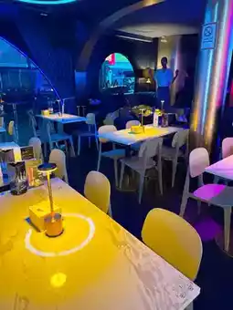 The restaurant has two floors. The upper floor always has a DJ playing EDM music, and there's a rooftop.