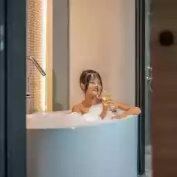 #Highlights: We especially recommend the outdoor saltwater pool, which features a chic marble design and curved shape, reminiscent of waves. Sunbeds and cabanas surround the pool.