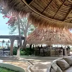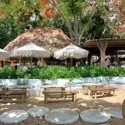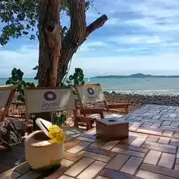🔥A beachfront cafe with the best view, The Oxygen Beachfront Oasis Pattaya. Inside, there are plenty of tables, both indoors and outdoors, right by the sea. A cool breeze blows through, and large trees provide shade. There are plenty of photo spots. The beach is rocky, so if you're looking for a chic view with the sea as a backdrop, this is the place for you.