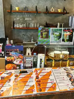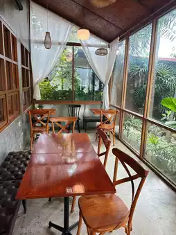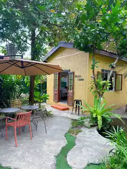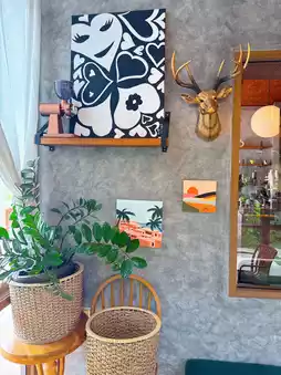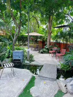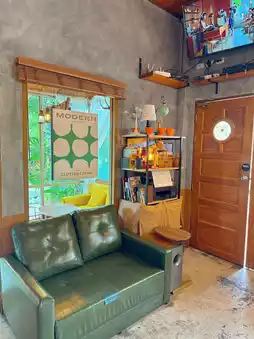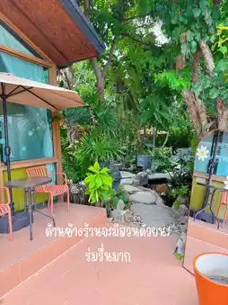 A cute, warm, and chic camping-style cafe in Pattaya. They also have space for working, chatting, or meeting with friends. The atmosphere is refreshing and shady. There's even a small waterfall inside and outside. The weather wasn't hot at all, perfect for taking photos. 💦