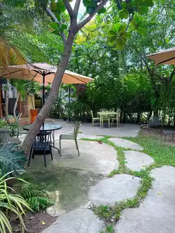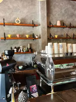 A hidden cafe, beautiful and captivating, elegant inside, shady outside.